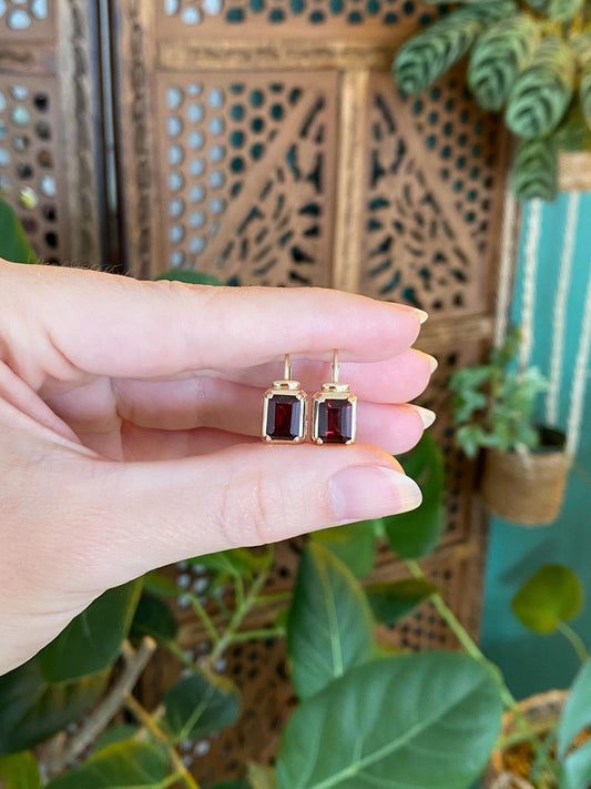 Vintage Solid 14k Yellow Gold Garnet Drop Earrings