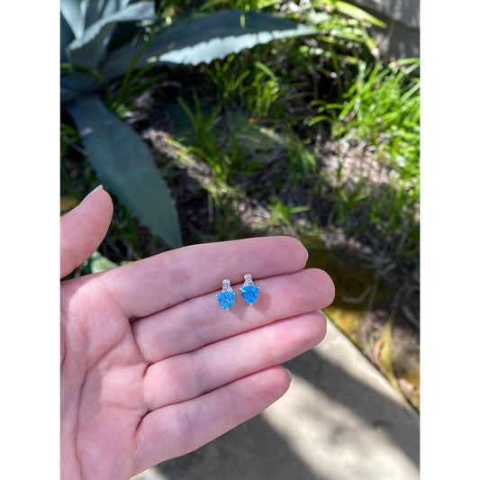 Solid 14k Yellow Gold Diamond Blue Sapphire Drop Earrings