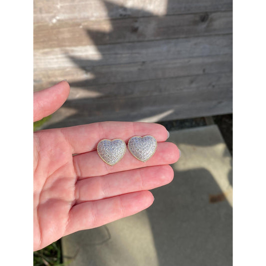 Vintage Solid 14k White & Yellow Gold Diamond Heart Stud Earrings