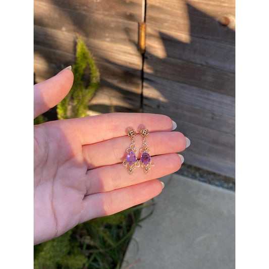 Vintage Solid 14k Yellow Gold Amethyst Filigree Dangle Stud Earrings