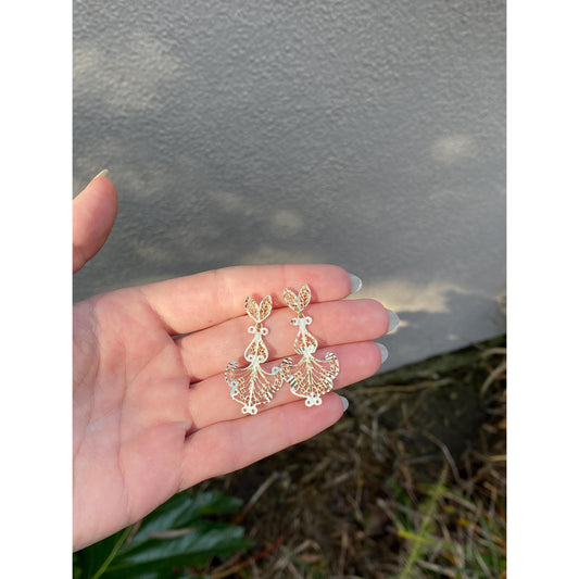Vintage Solid 14k Yellow Gold Diamond Cut Filigree Dangle Stud Earrings