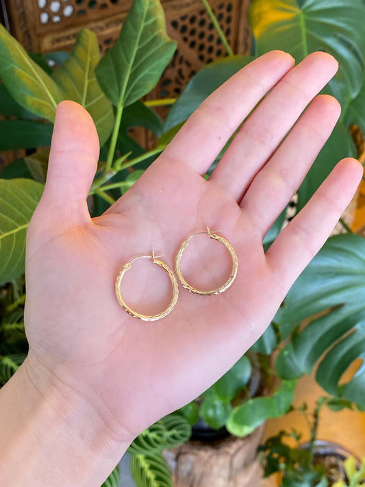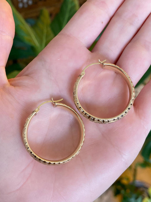 Vintage 14k Yellow Gold Textured Hoop Earrings