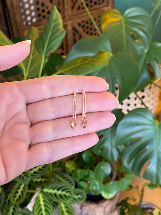 Vintage Solid 14k Yellow Gold Open Cube Serpentine Chain Dangle Stud Earrings