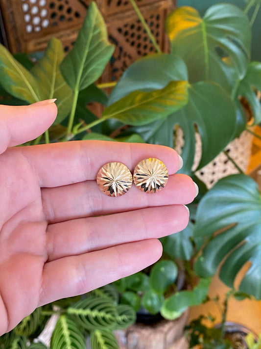 Vintage Solid 14k Yellow Gold Diamond Cut Domed Stud Earrings