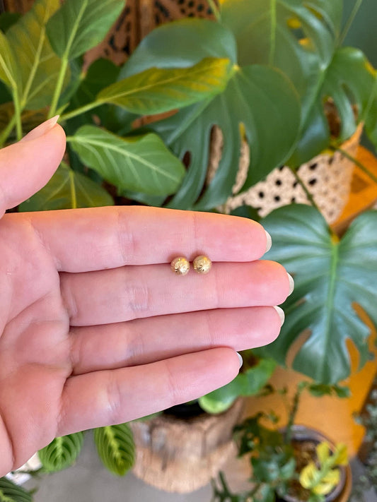 Vintage 14k Yellow Gold Diamond Cut Satin Gold Ball Stud Earrings