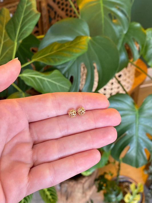 Vintage Solid 14k Yellow Gold Open Work Ball Stud Earrings