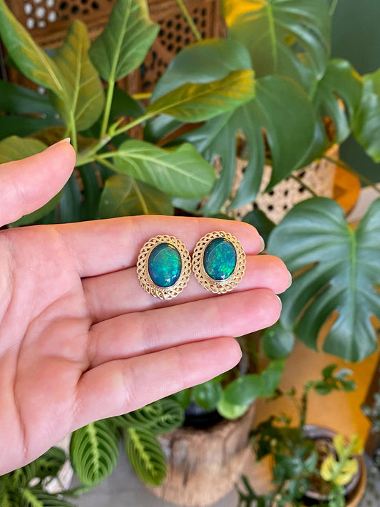 Vintage Solid 10k Yellow Gold Opal Stud Earrings