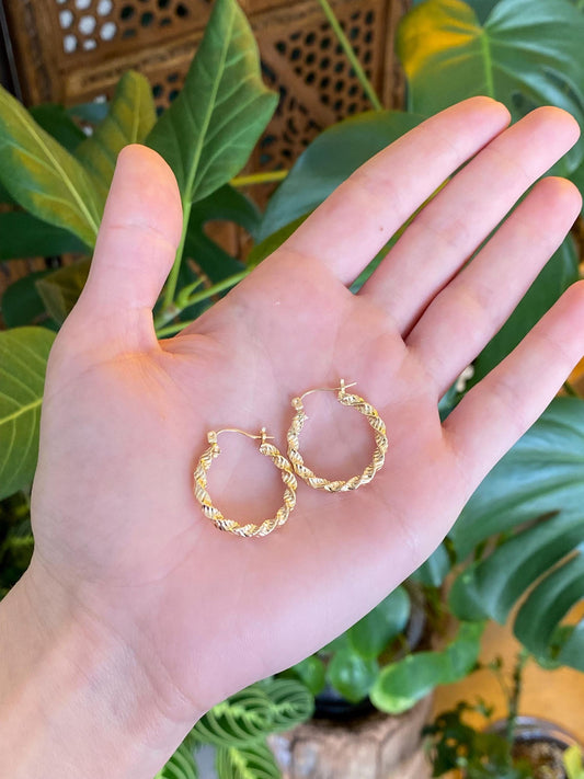 Vintage 14k Yellow Gold Twist Hoop Earrings