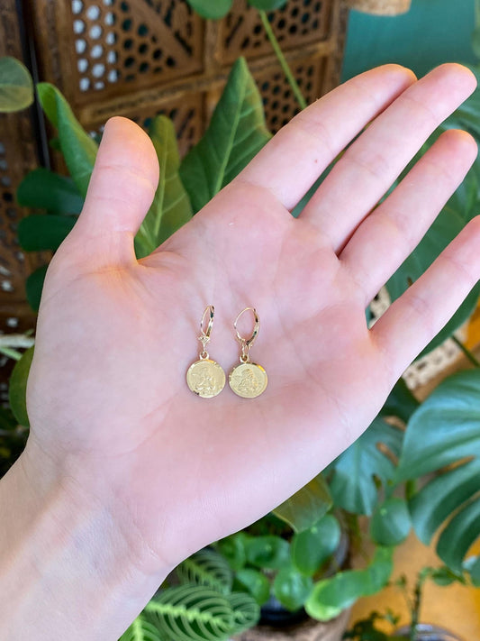 Vintage Solid 14k Yellow Gold Cherub Angel Dangle Earrings