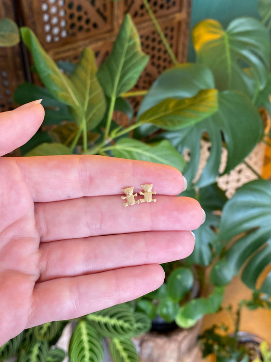 Vintage Solid 14k Yellow Gold Teddy Bear Stud Earrings