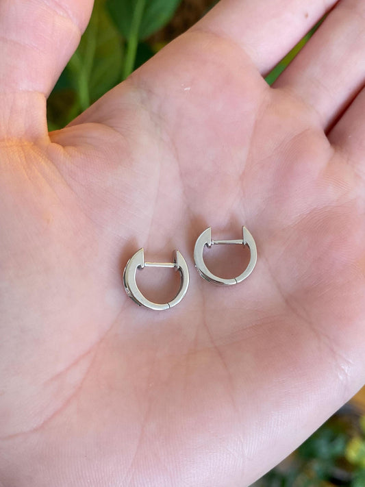 Vintage Solid 14k White Gold Diamond Emerald Hoop Earrings