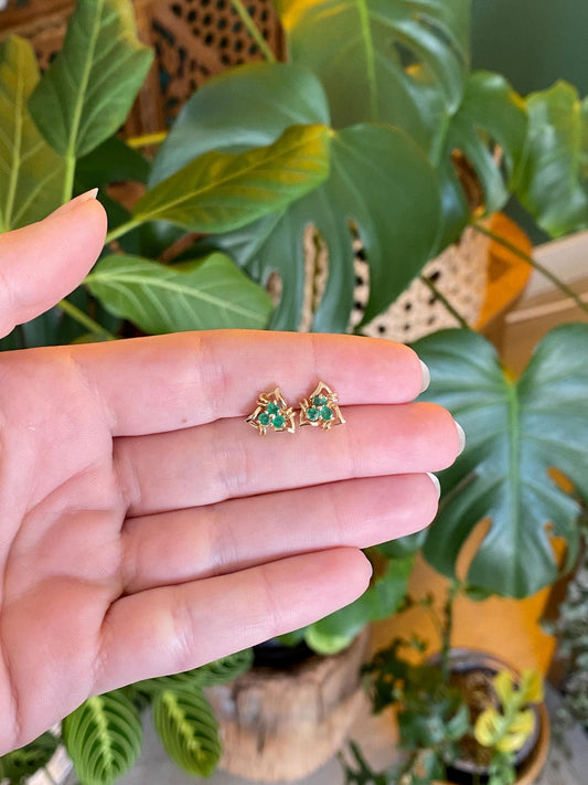 Vintage Solid 14k Yellow Gold Emerald Cluster Stud Earrings