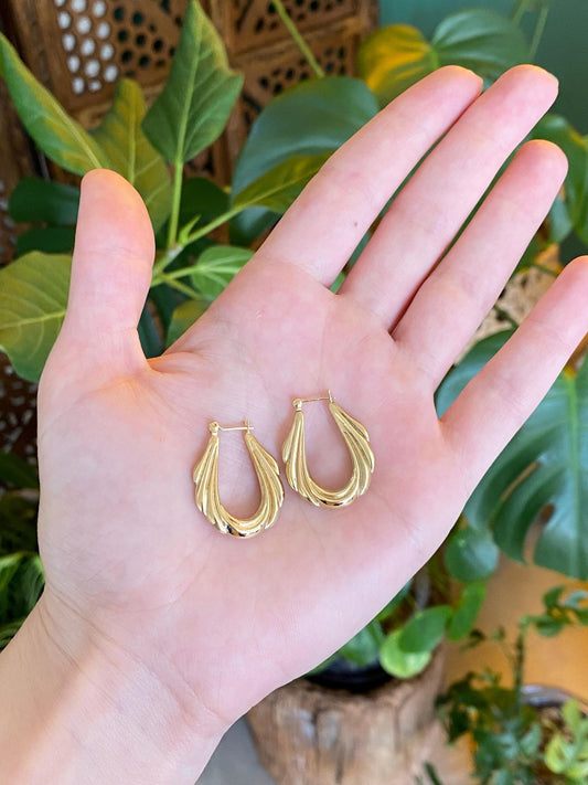 Vintage 14k Yellow Gold Scalloped Hoop Earrings