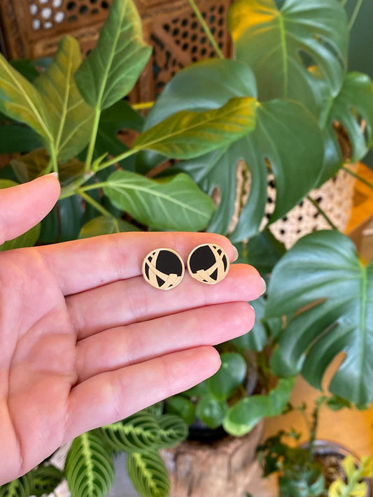 Vintage Solid 14k Yellow Gold Onyx Stud Earrings