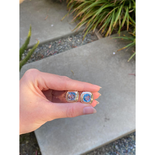 Vintage Solid 14k White & Yellow Gold Topaz Stud Earrings