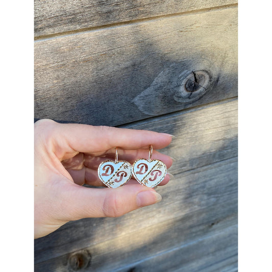 Vintage Solid 14k Yellow Gold Diamond Cut Initial 'DP' Heart Drop Earrings