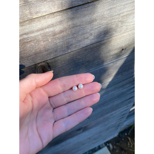 Vintage Solid 14k Yellow Gold Pearl Stud Earrings