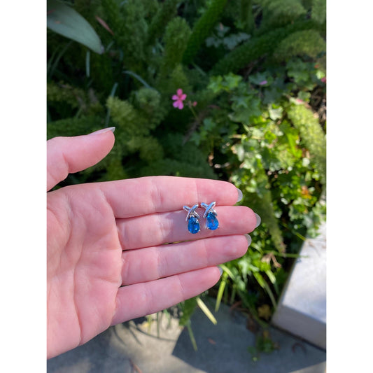 Vintage Solid 14k White Gold Topaz X Stud Earrings