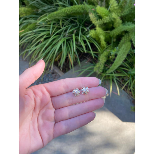 Vintage Solid 10k White & Yellow Gold Diamond Cut Flower Stud Earrings