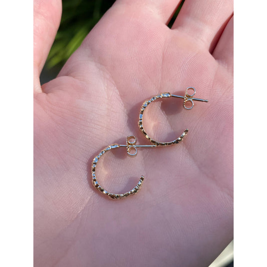 Vintage Solid 14k Yellow Gold Diamond Cut Half Hoop Earrings