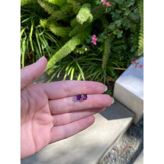 Vintage Solid 14k Yellow Gold Amethyst Stud Earrings