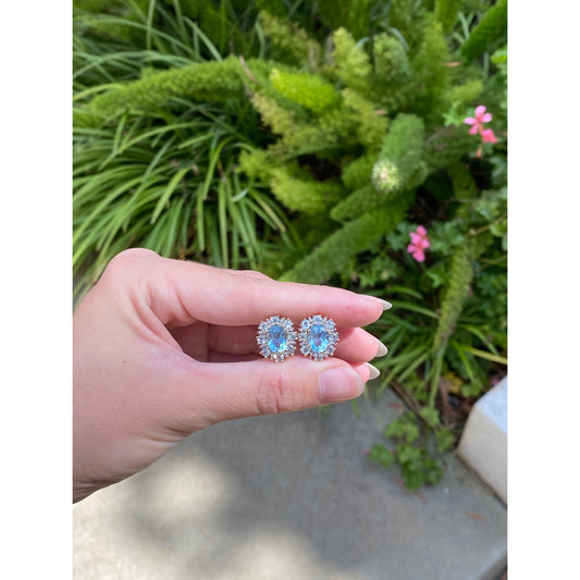 Vintage Solid 14k Yellow Gold Topaz Spinel Halo Stud Earrings
