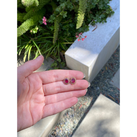 Vintage Solid 14k Yellow Gold Pink Sapphire Stud Earrings