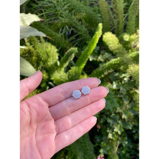 Solid 10k Yellow Gold Cubic Zirconia Cluster Hexagon Stud Earrings