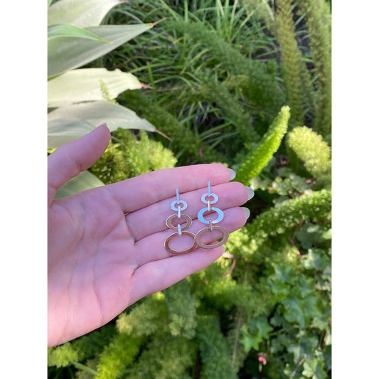 Vintage Solid 14k Tri Tone Gold Concentric Oval Dangle Stud Earrings