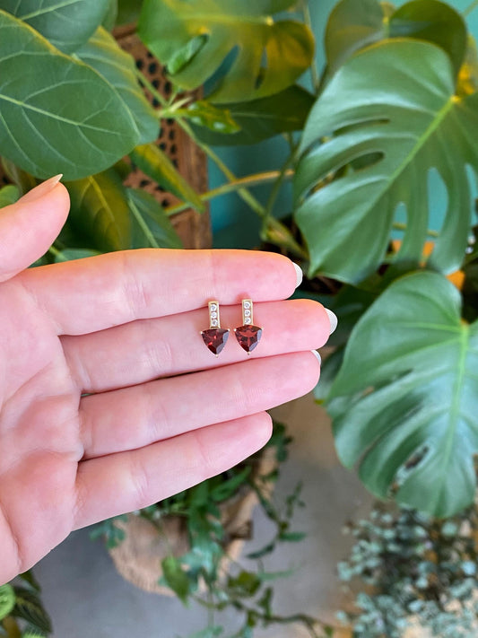 Vintage Solid 14k Yellow Gold Clear & Red Cubic Zirconia Stud Earrings