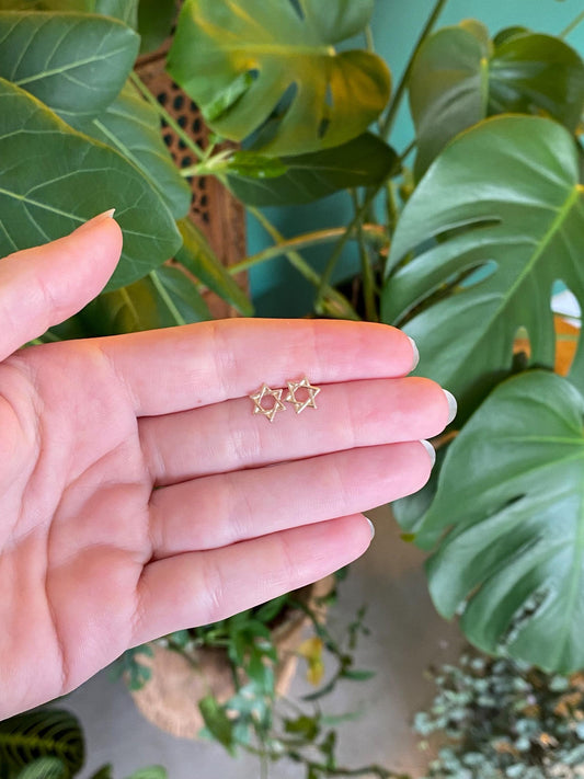 Vintage Solid 14k Yellow Gold Star of David Stud Earrings