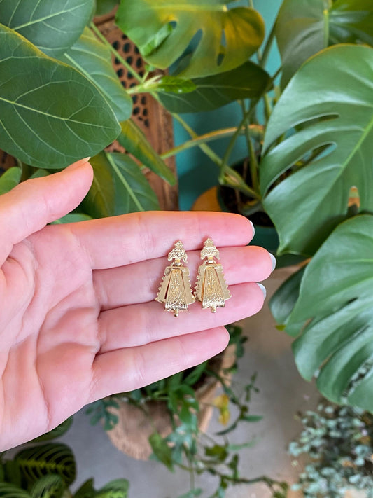 Vintage Solid 14k Yellow Gold Design Dangle Stud Earrings
