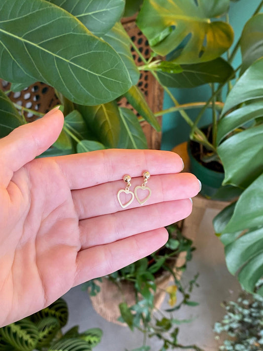 Vintage Solid 14k Open Heart Dangle Stud Earrings