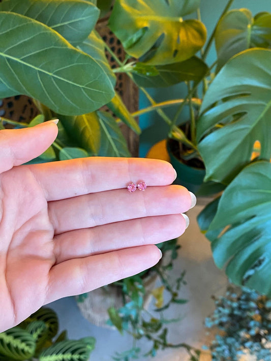 Vintage Solid 14k Yellow Gold Pink Cubic Zirconia Stud Earrings