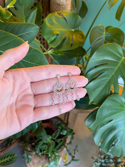 Vintage Solid 14k White Gold Diamond Cut Chandelier Dangle Stud Earrings