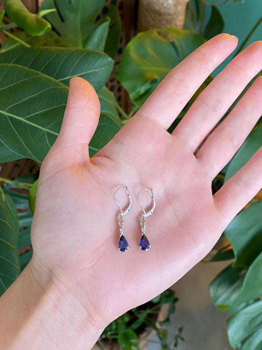 Vintage Solid 14k White Gold Diamond Blue Sapphire Dangle Earrings