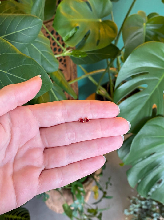 Vintage Solid 14k Yellow Gold Red Cubic Zirconia Stud Earrings