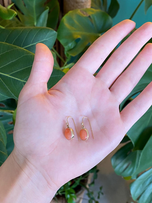 Vintage Solid 9k Yellow Gold Coral Dangle Earrings