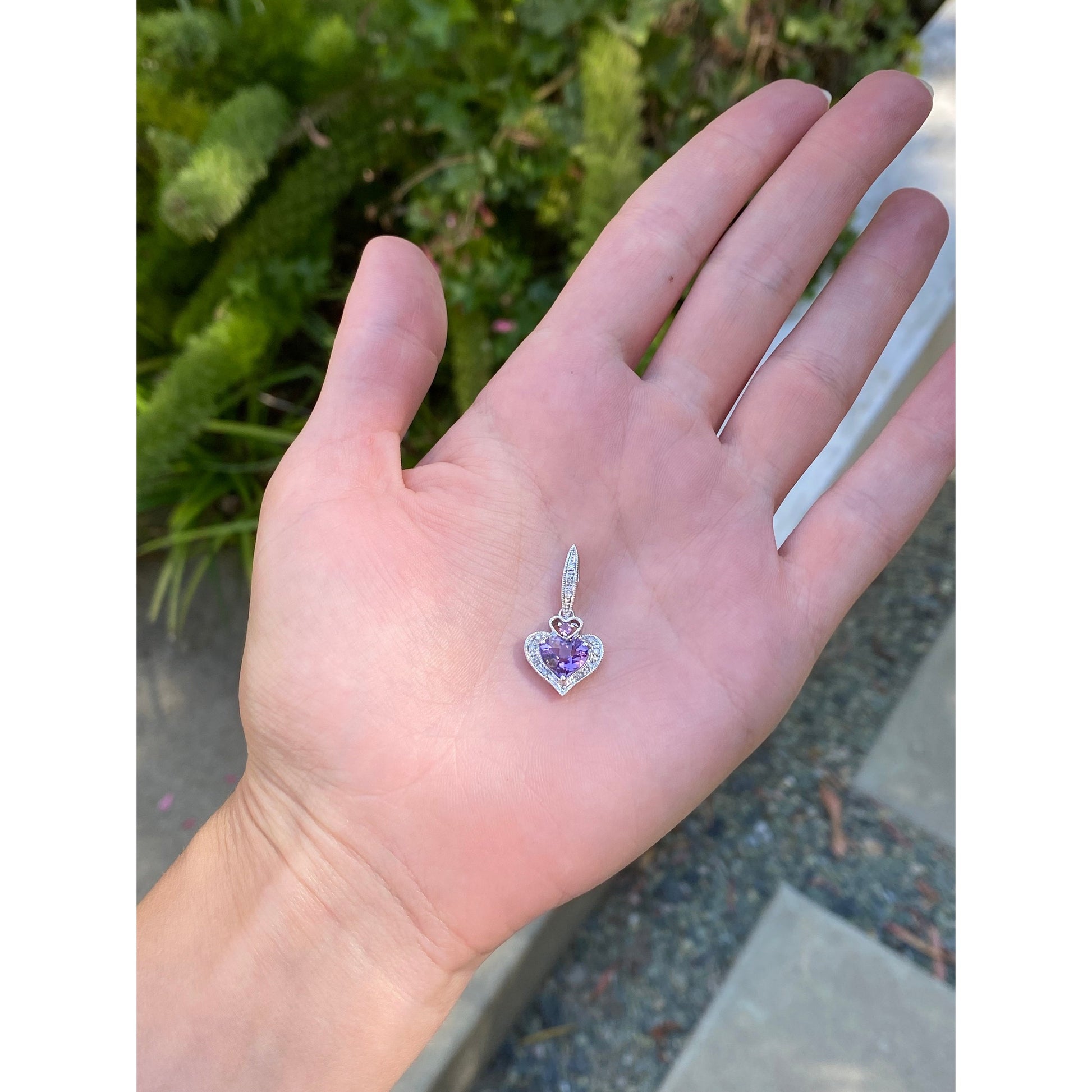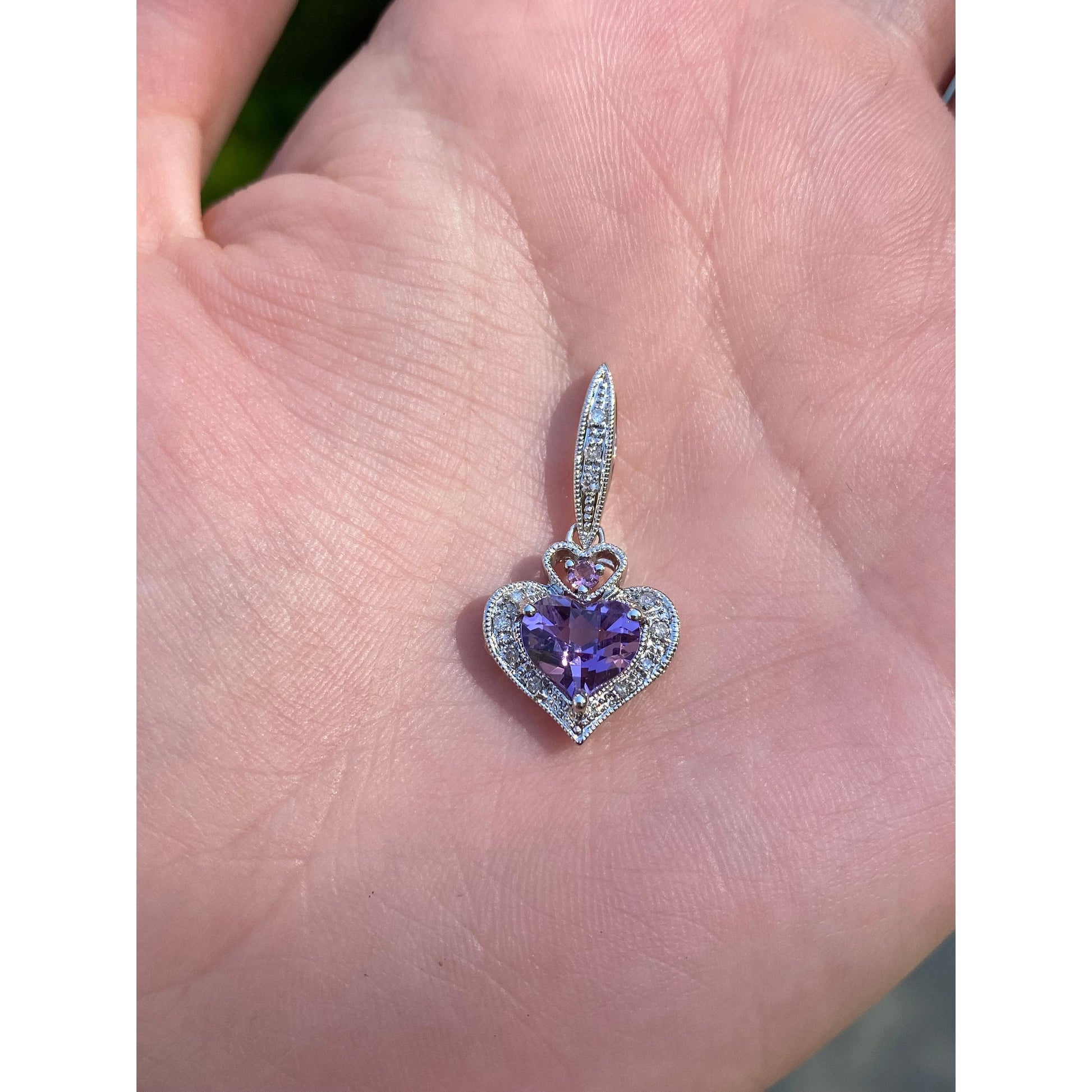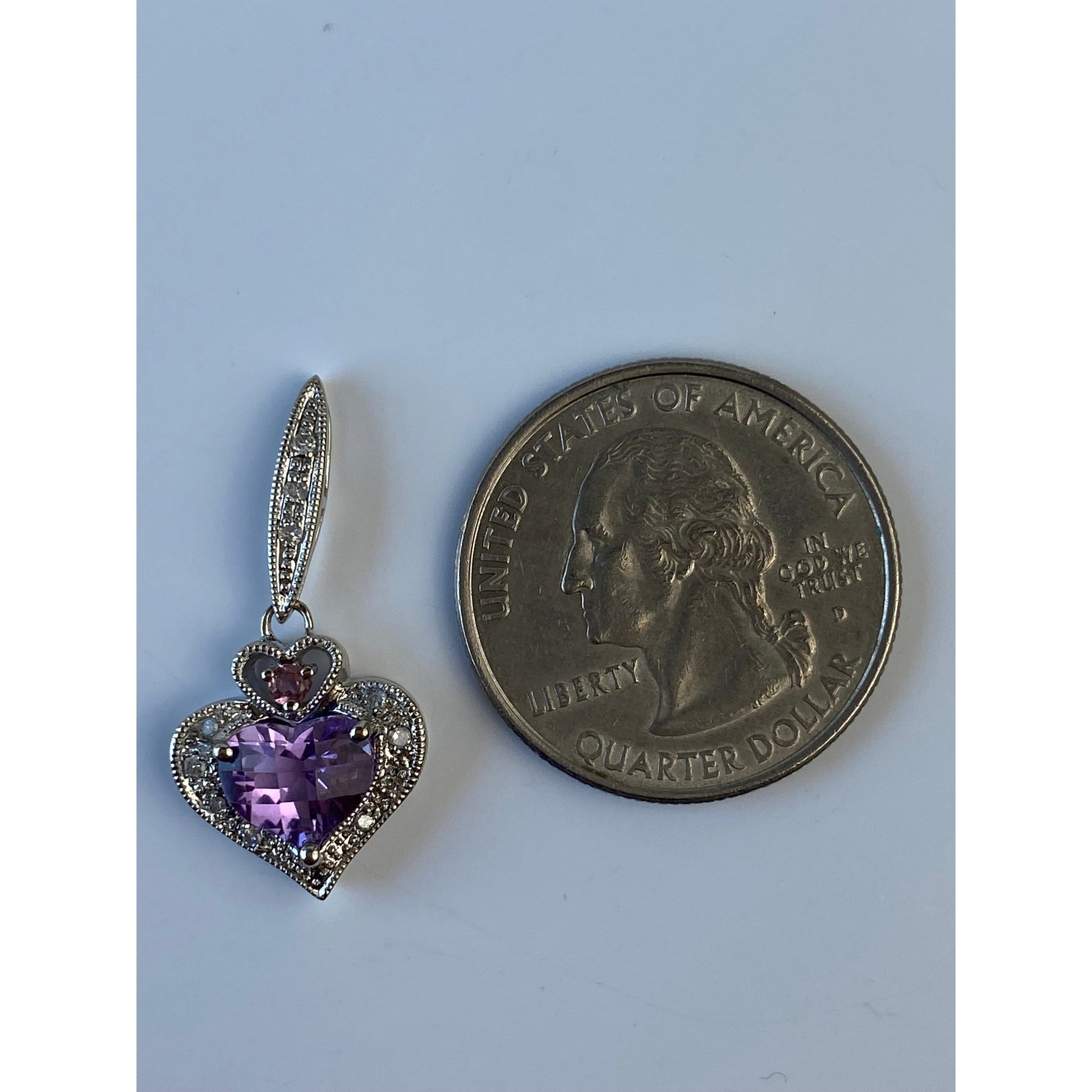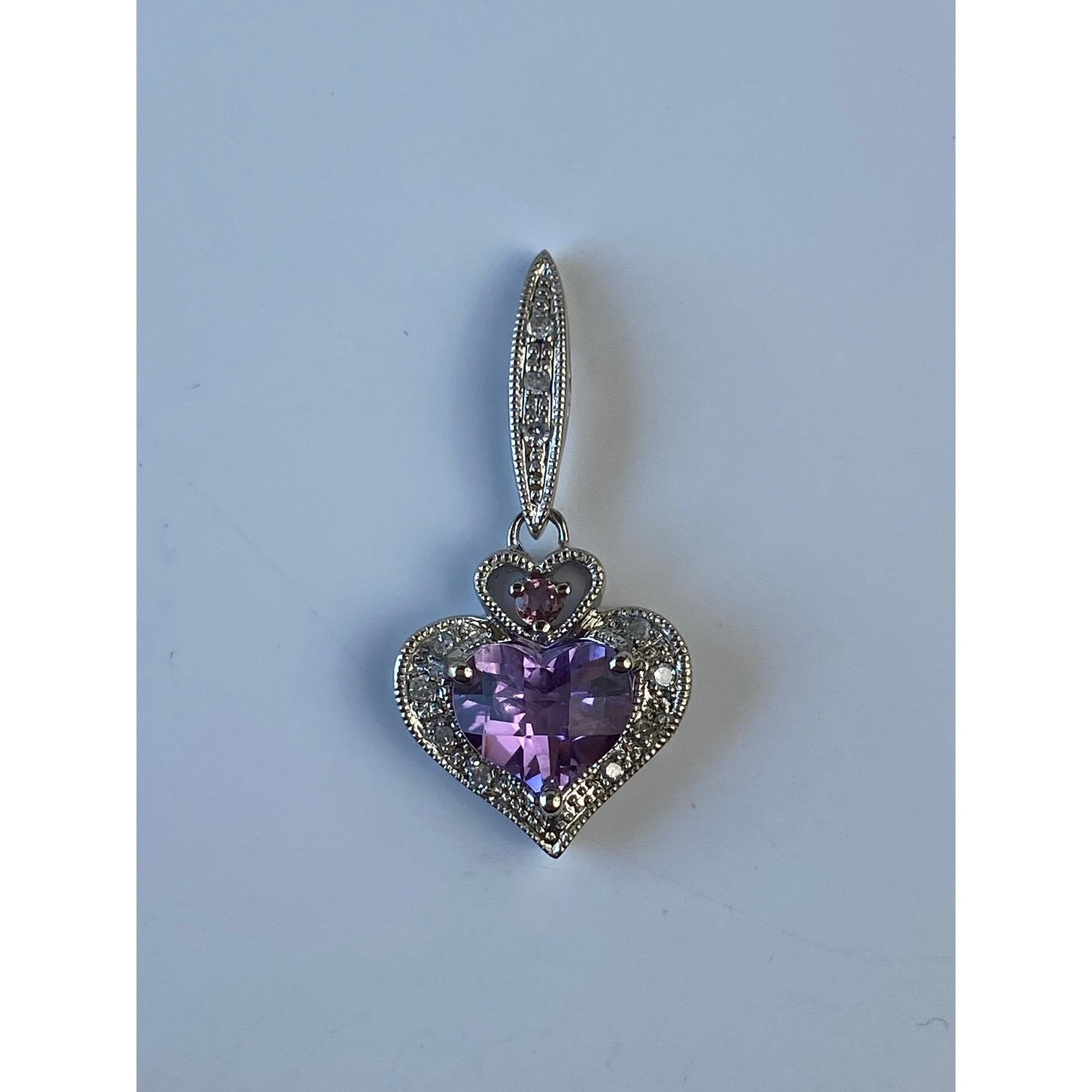 Solid 10k White Gold Amethyst Clear Sapphire Pink Tourmaline Heart Slide Charm