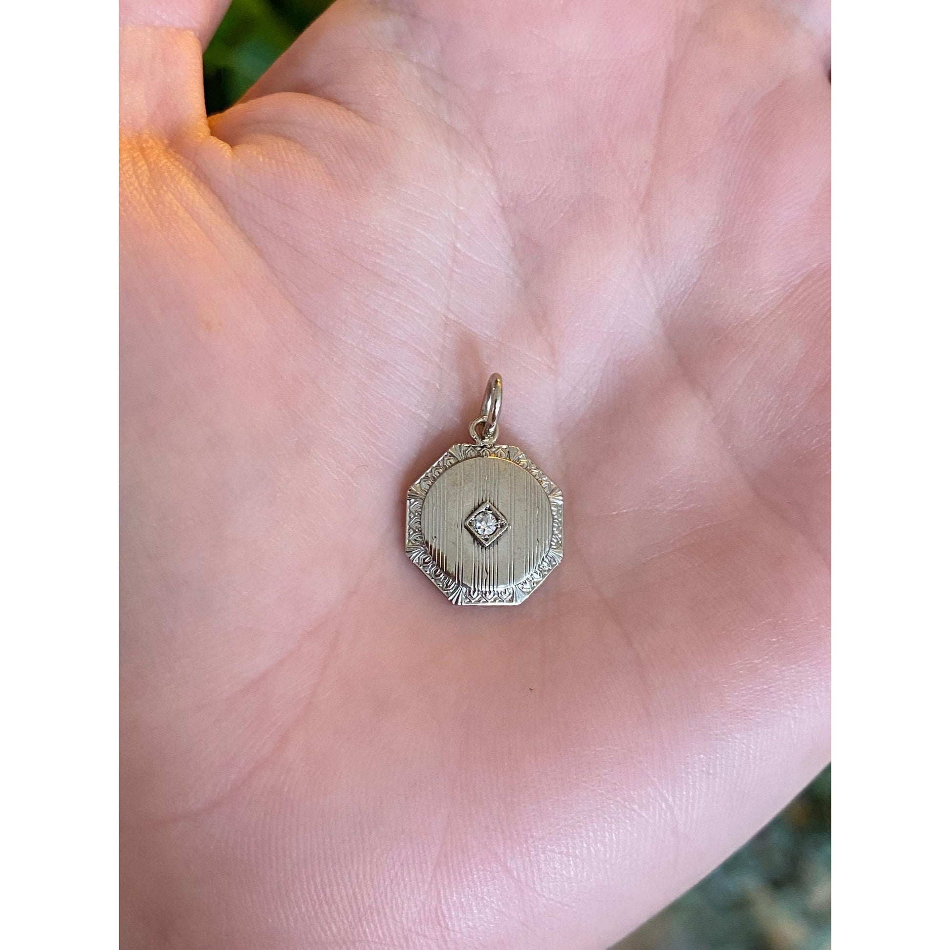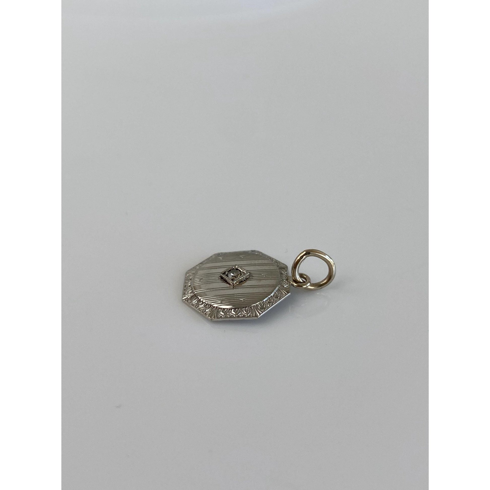 Solid 10k White Gold Diamond Lined Cufflink Conversion Charm
