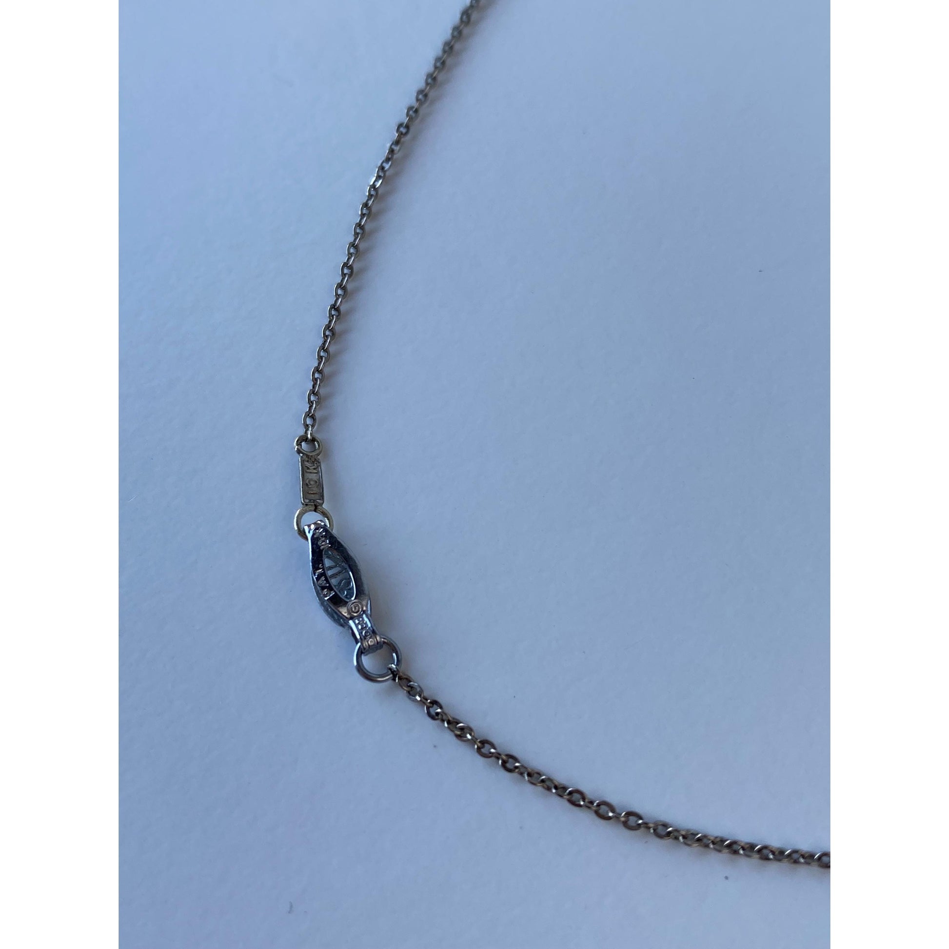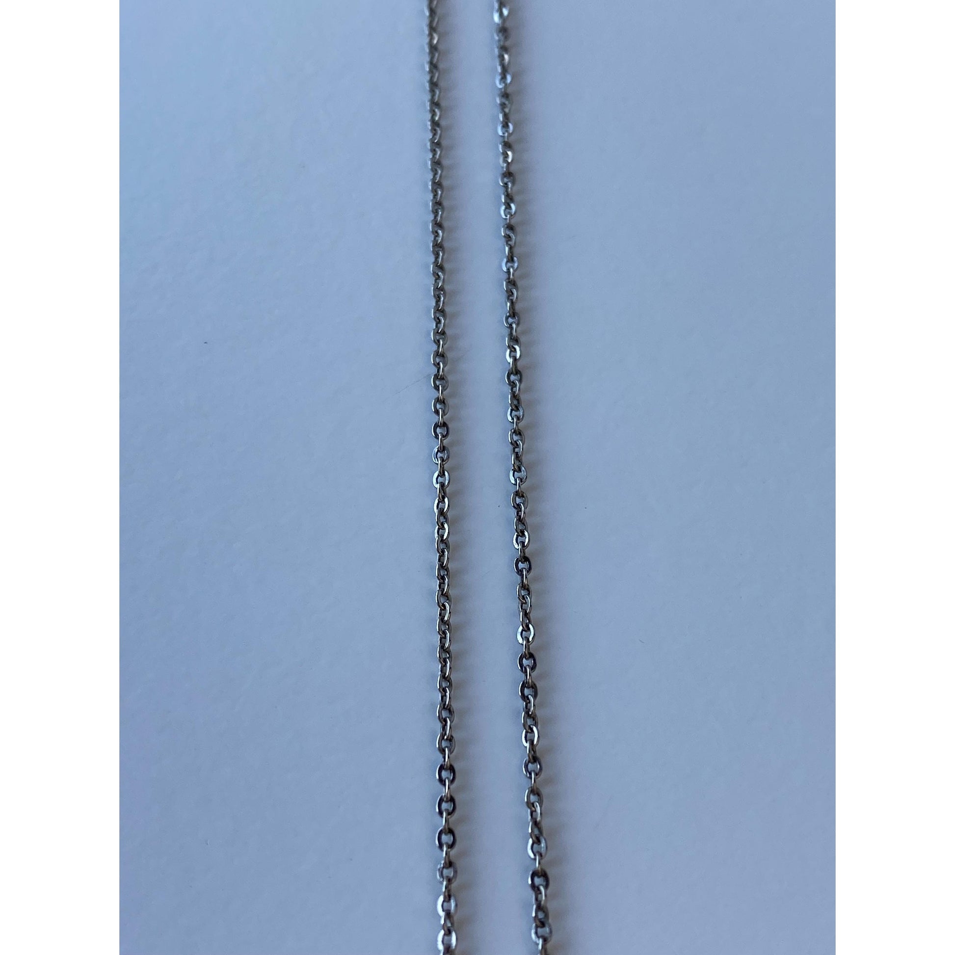 Solid 10k White Gold Green Cubic Zirconia Pearl Art Deco Necklace - 19.25 inches