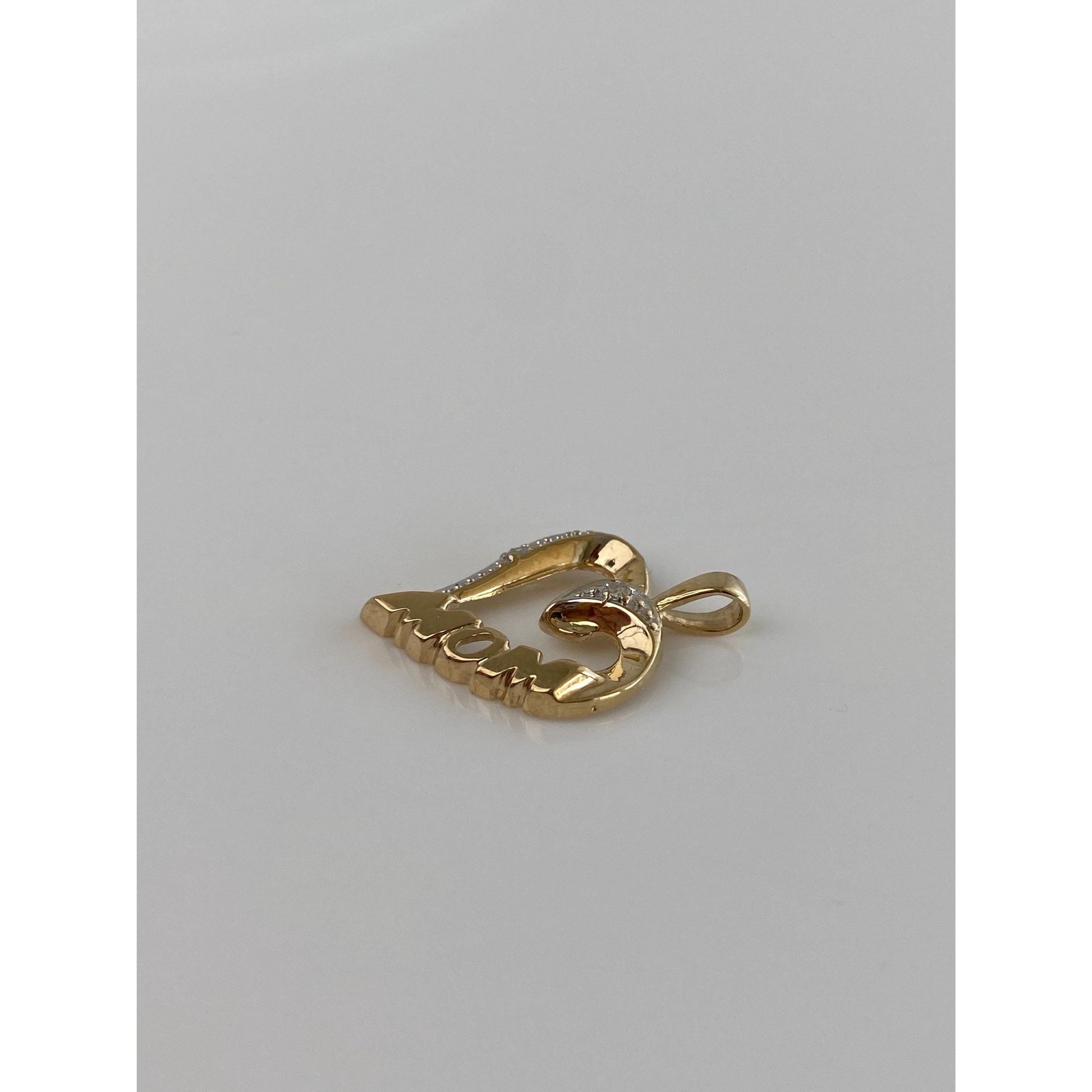 Solid 10k White & Yellow Gold Diamond Mom Heart Charm