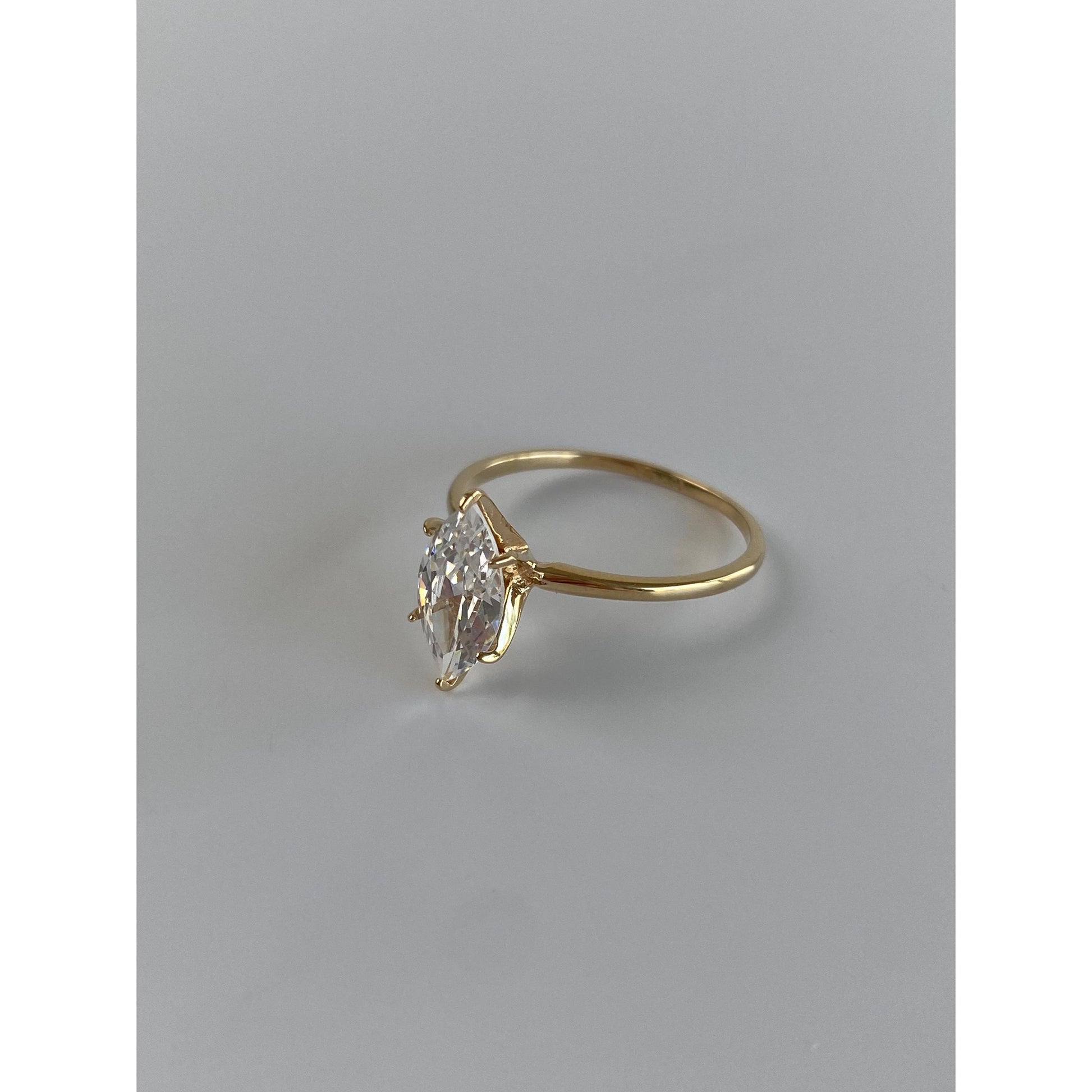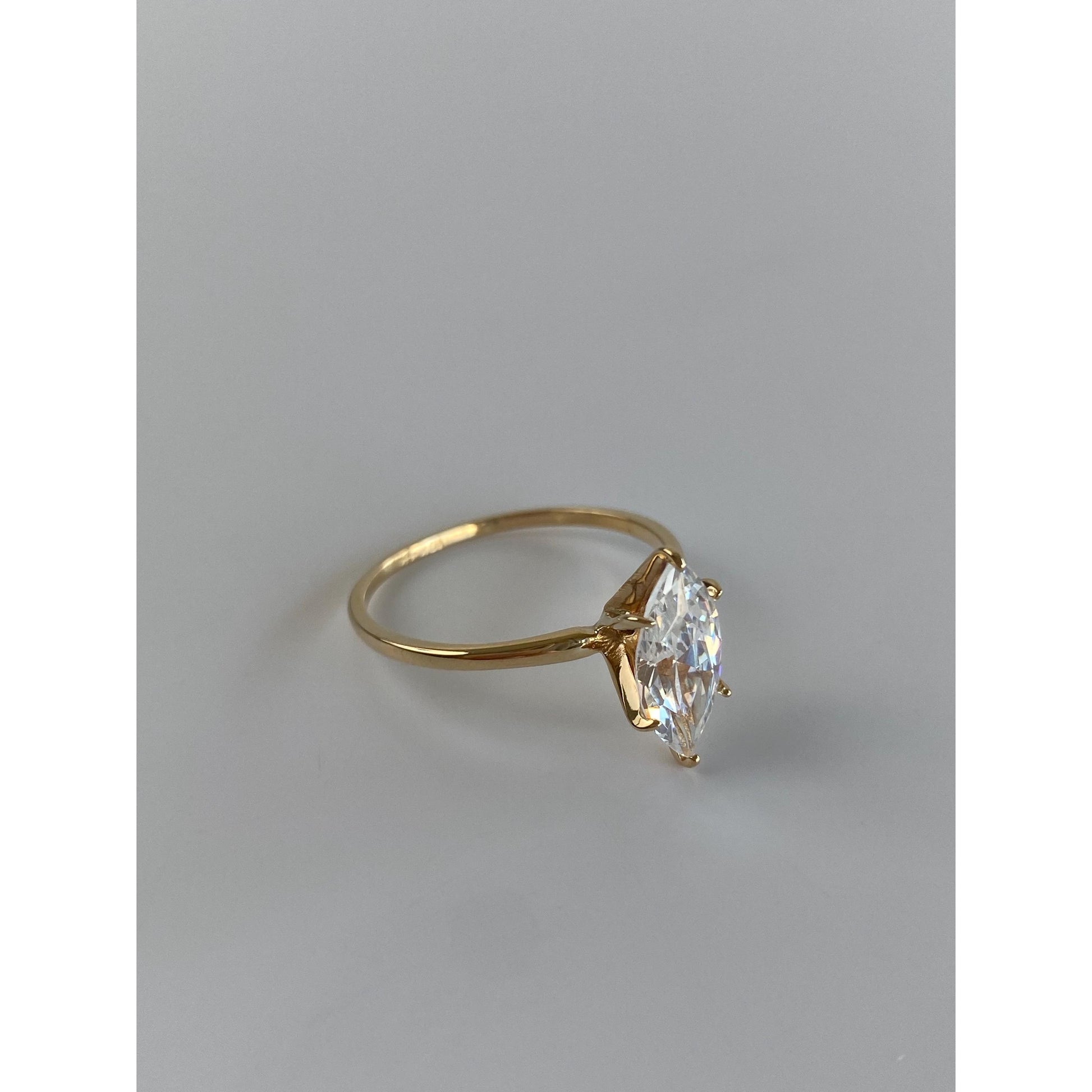 Solid 10k Yellow Gold Clear Cubic Zirconia Marquis Shape Ring - Size 8.75