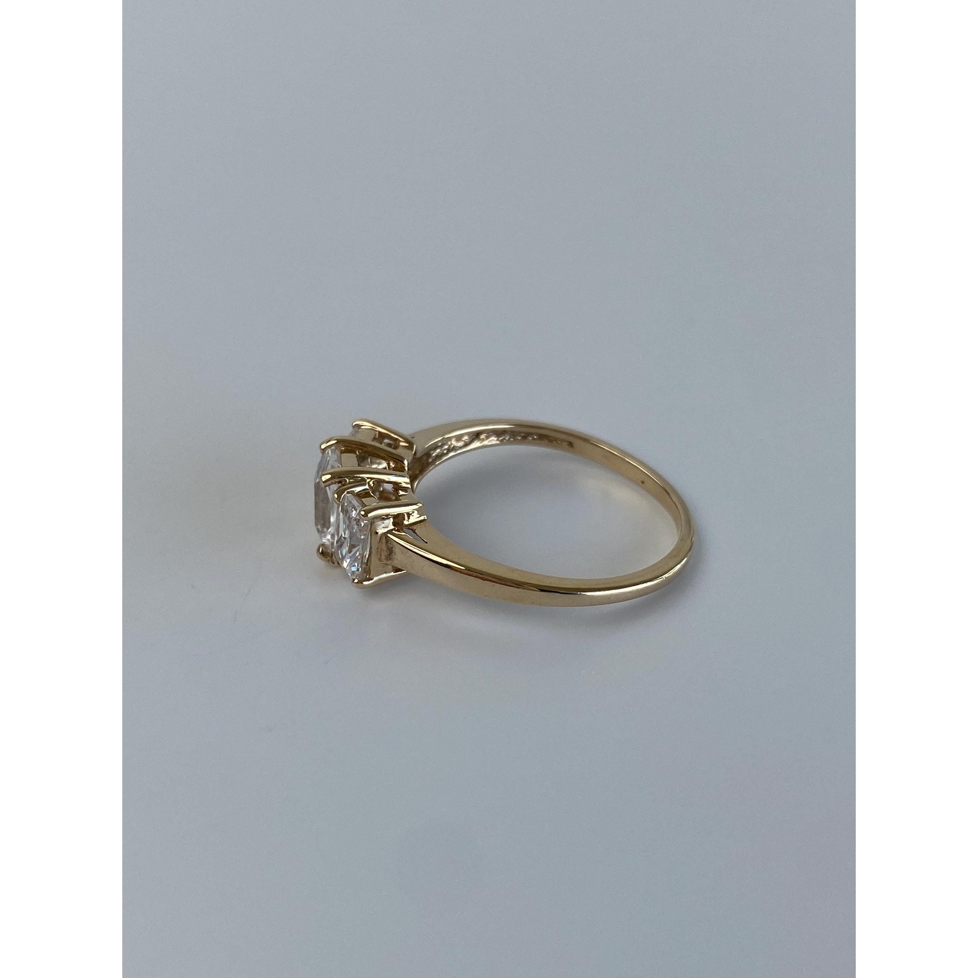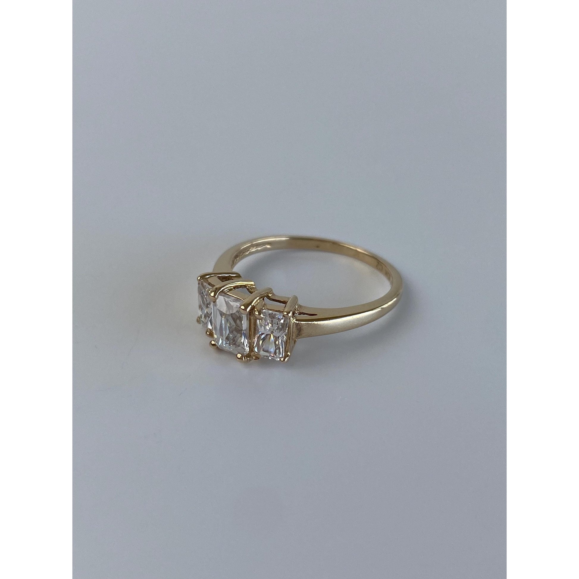 Solid 10k Yellow Gold Clear Cubic Zirconia Row Ring - Size 6.5