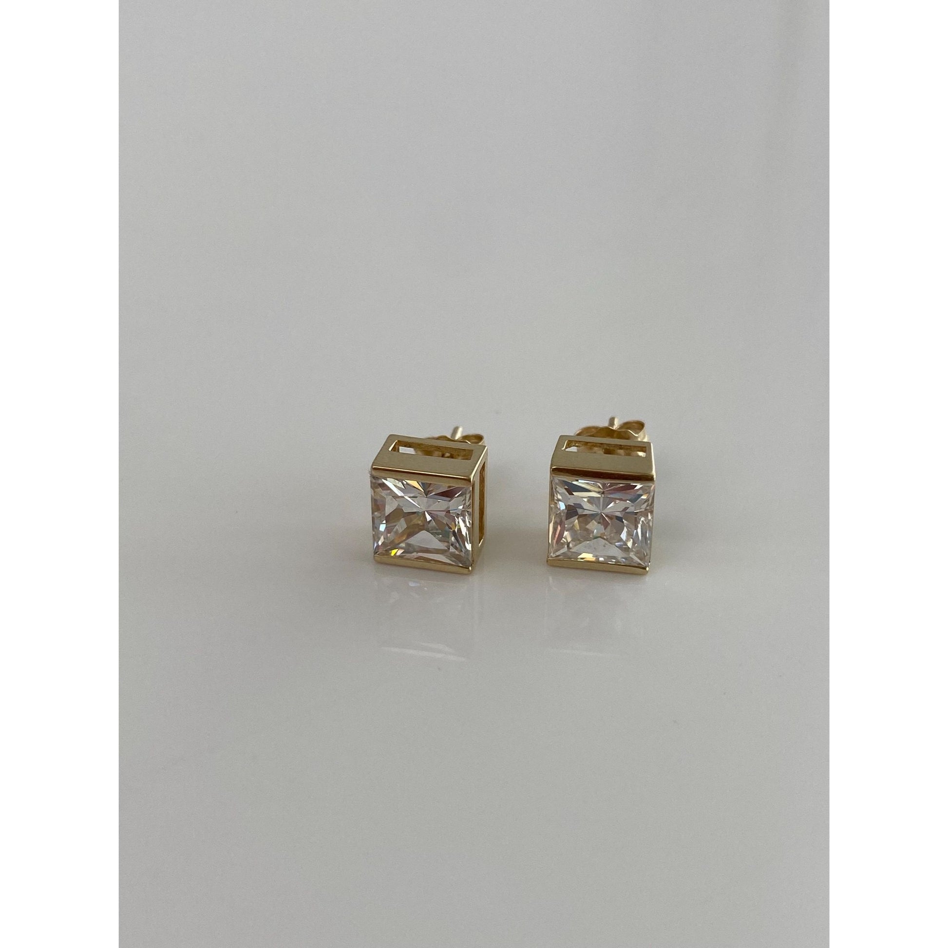 Solid 10k Yellow Gold Cubic Zirconia Square Stud Earrings