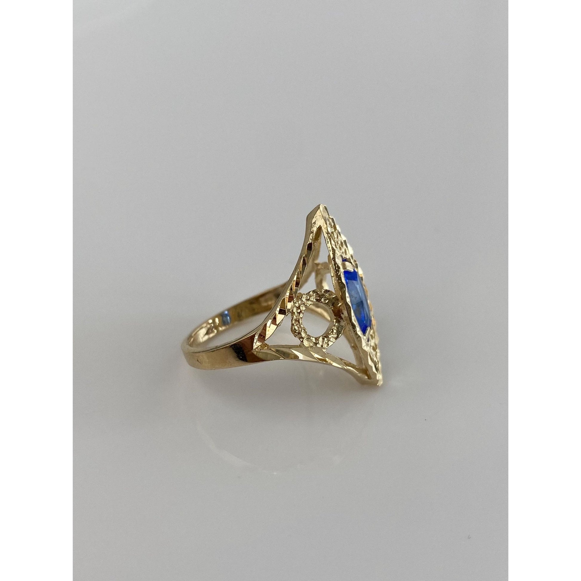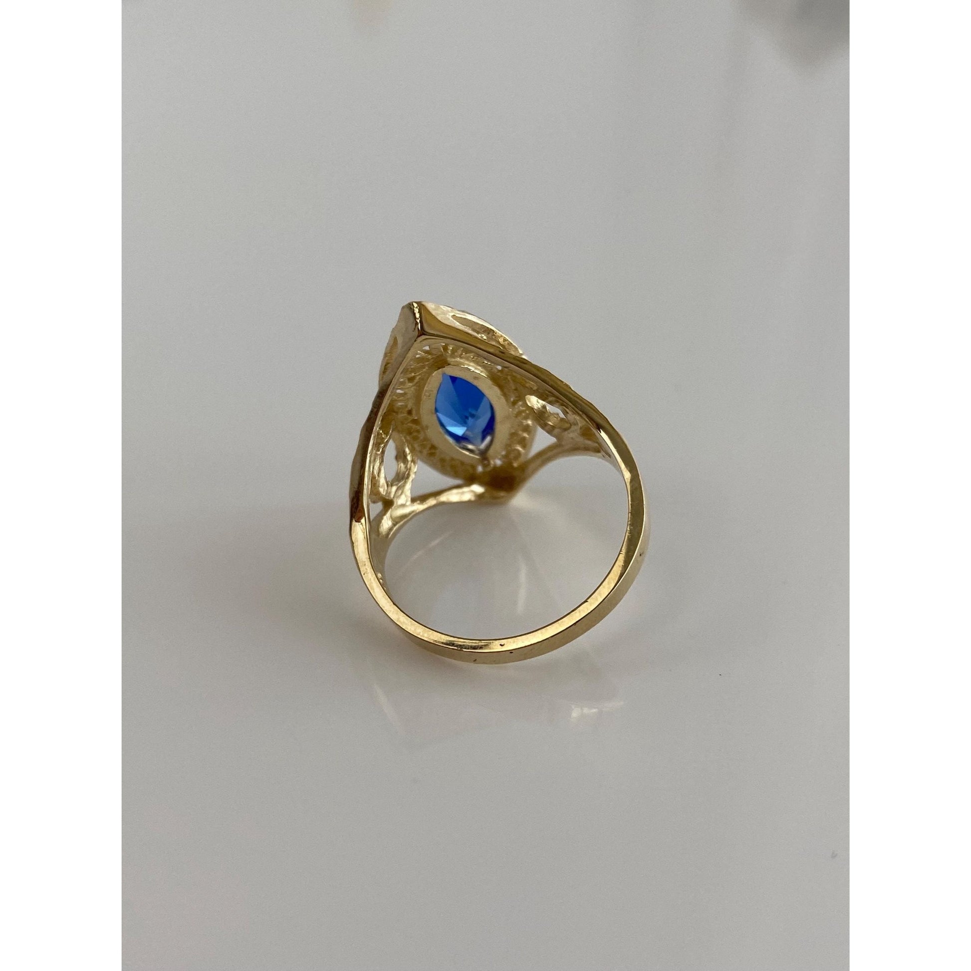 Solid 10k Yellow Gold Diamond Cut Blue Cubic Zirconia Ring - Size 7.5