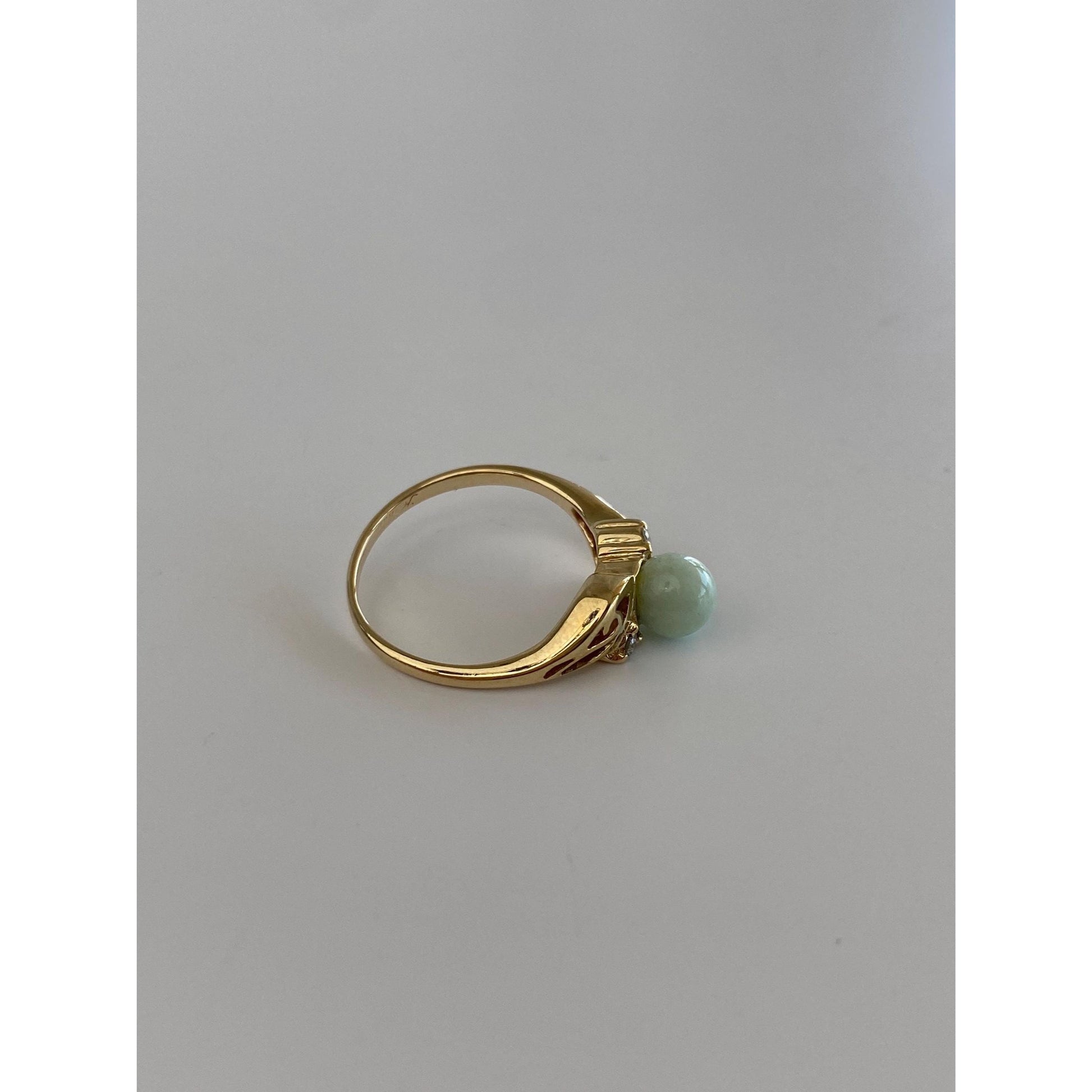 Solid 10k Yellow Gold Diamond Jade Ring - Size 3.25