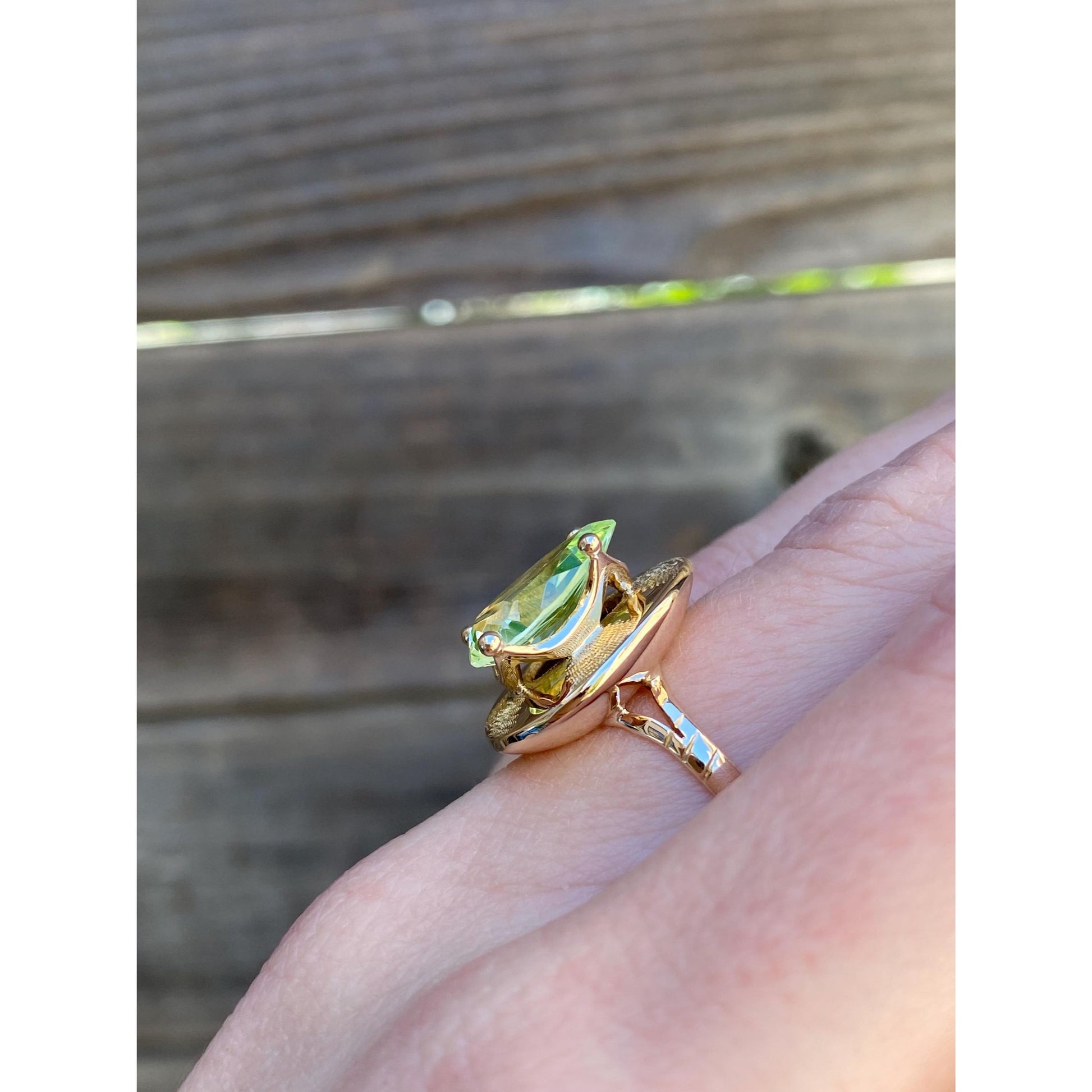 Solid 10k Yellow Gold Light Green Spinel Teardrop Ring - Size 6.25