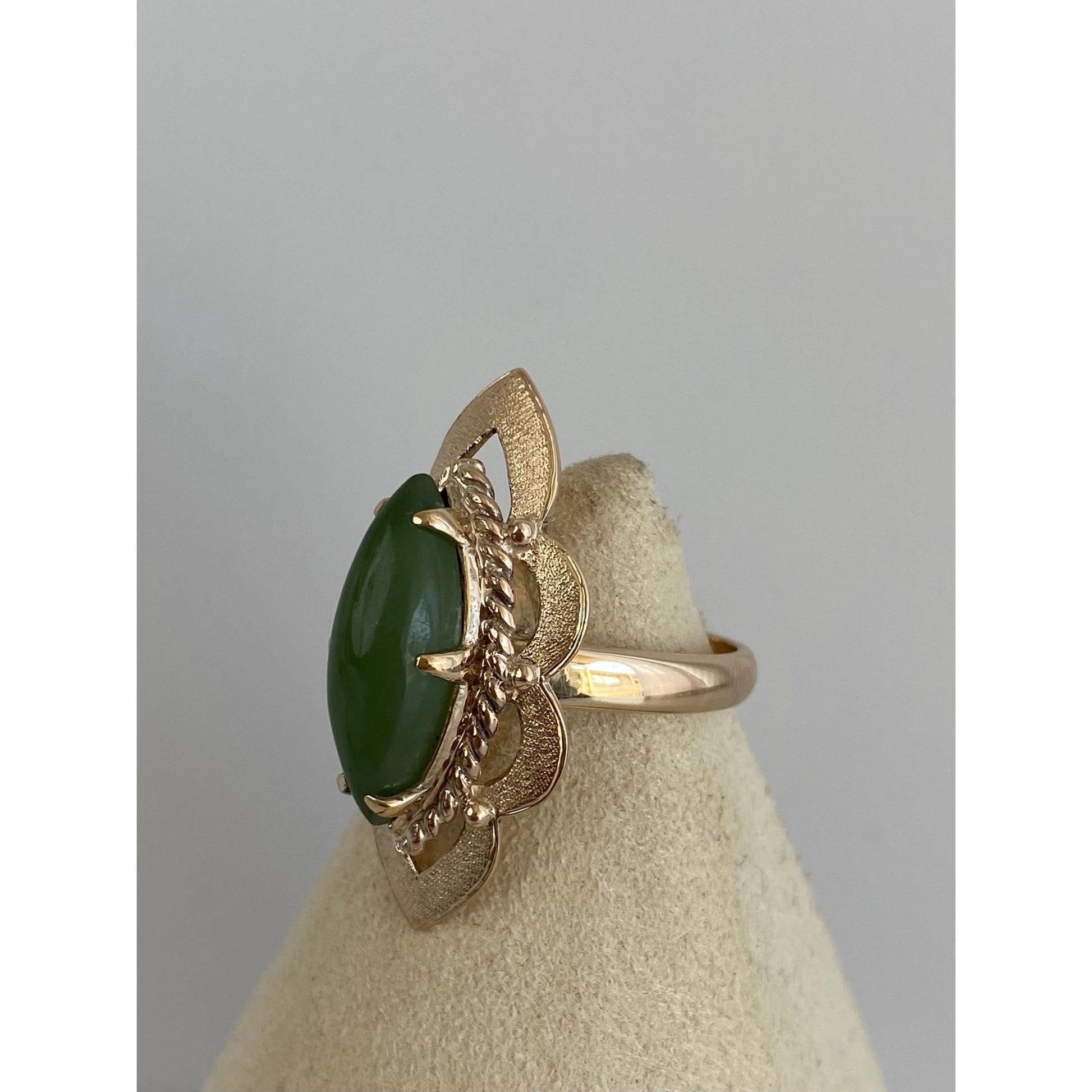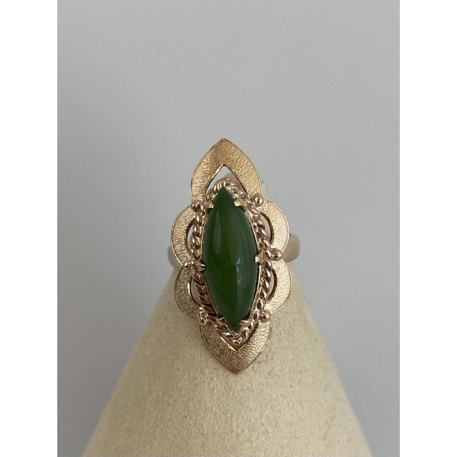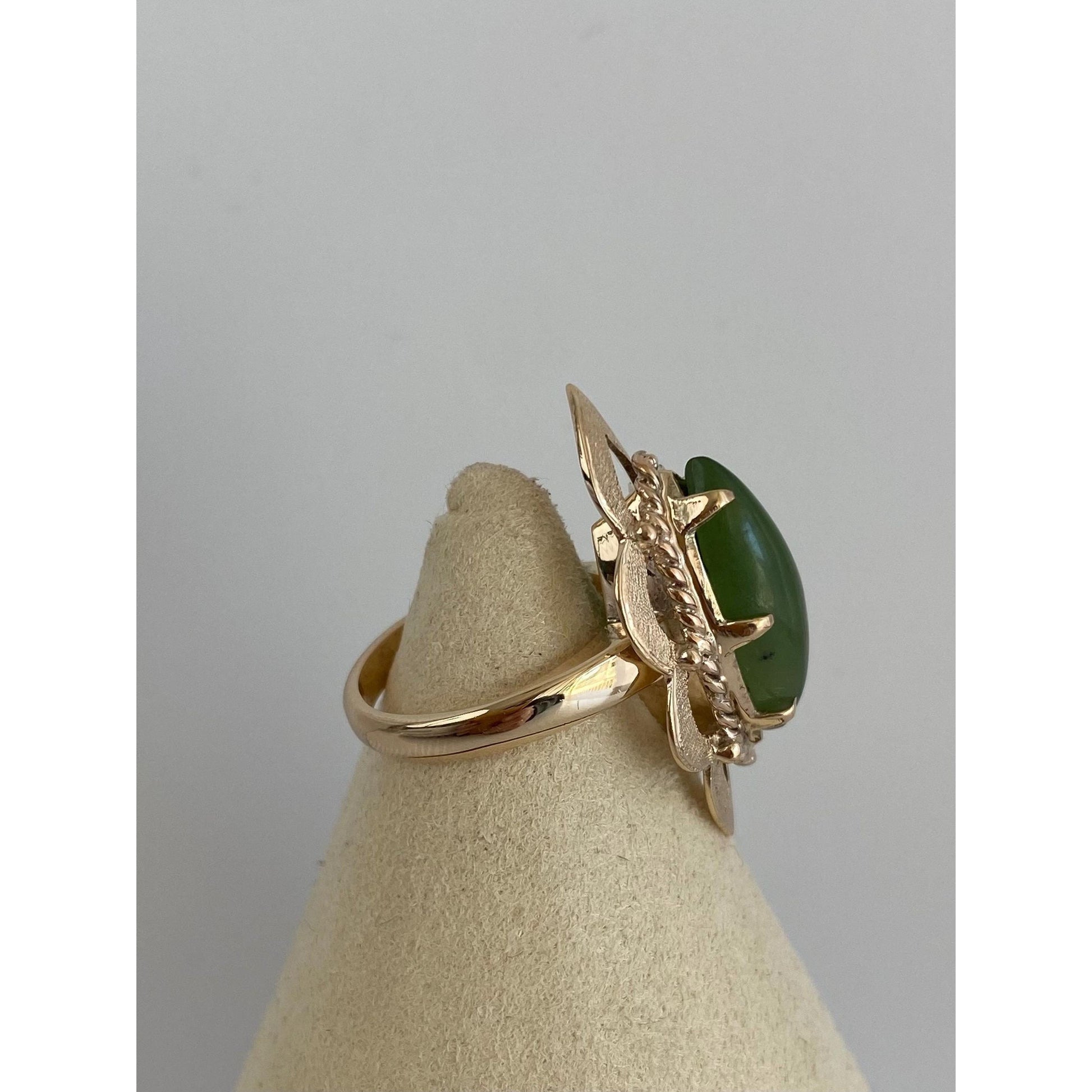 Solid 10k Yellow Gold Nephrite Ring - Size 6.5