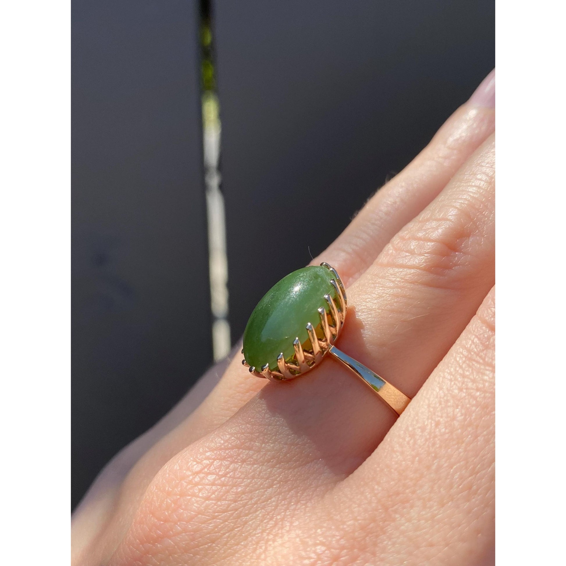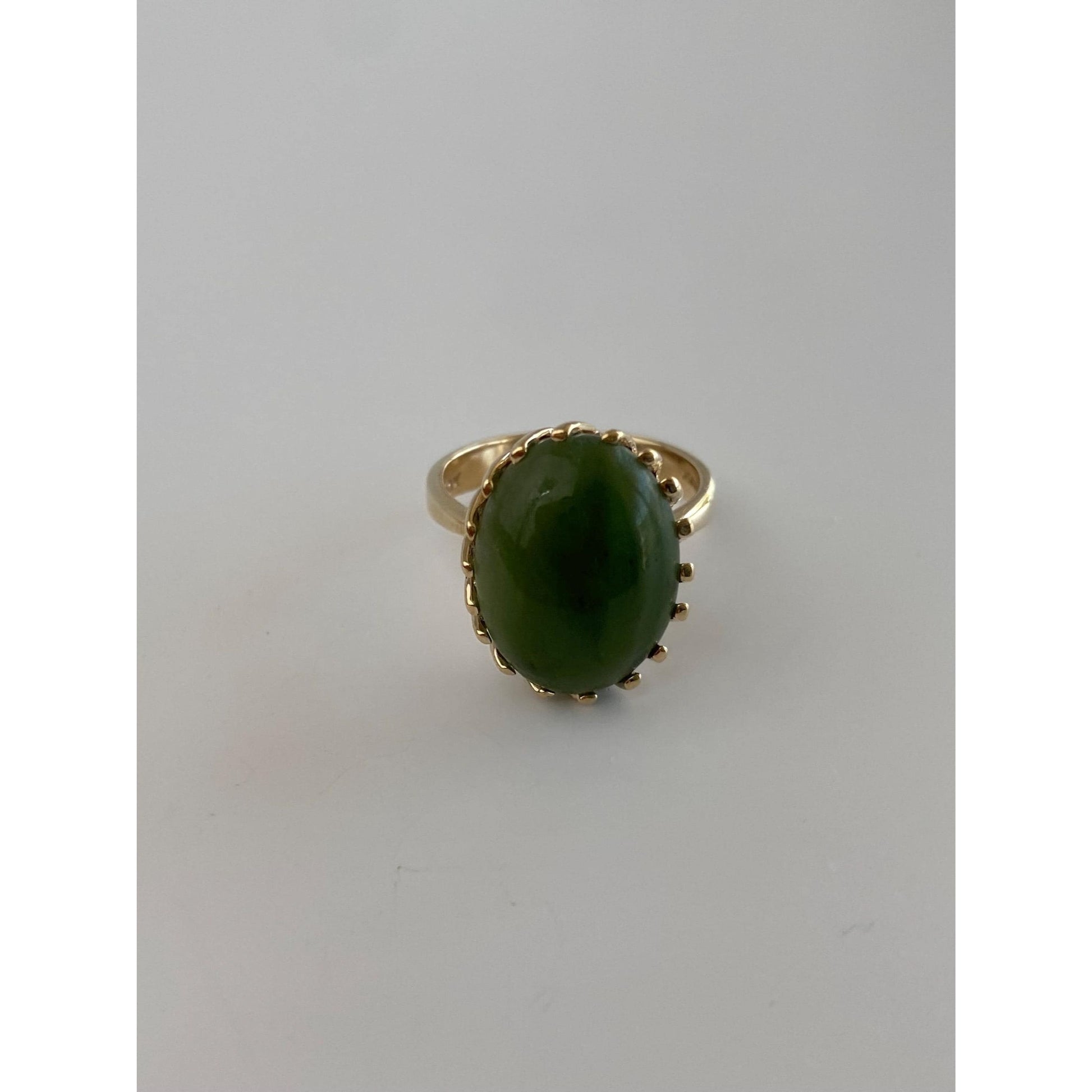 Solid 10k Yellow Gold Nephrite Ring - Size 6.75